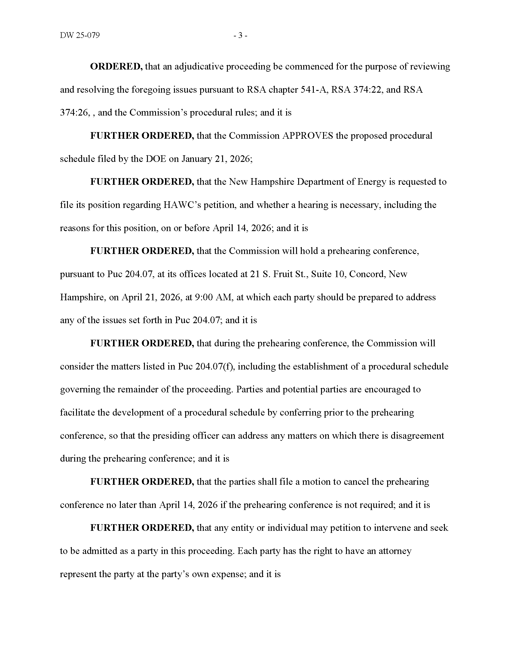 HAWC Petitions for Change in Public Fire Protection Rate Structure | Docket No. DW 25-034