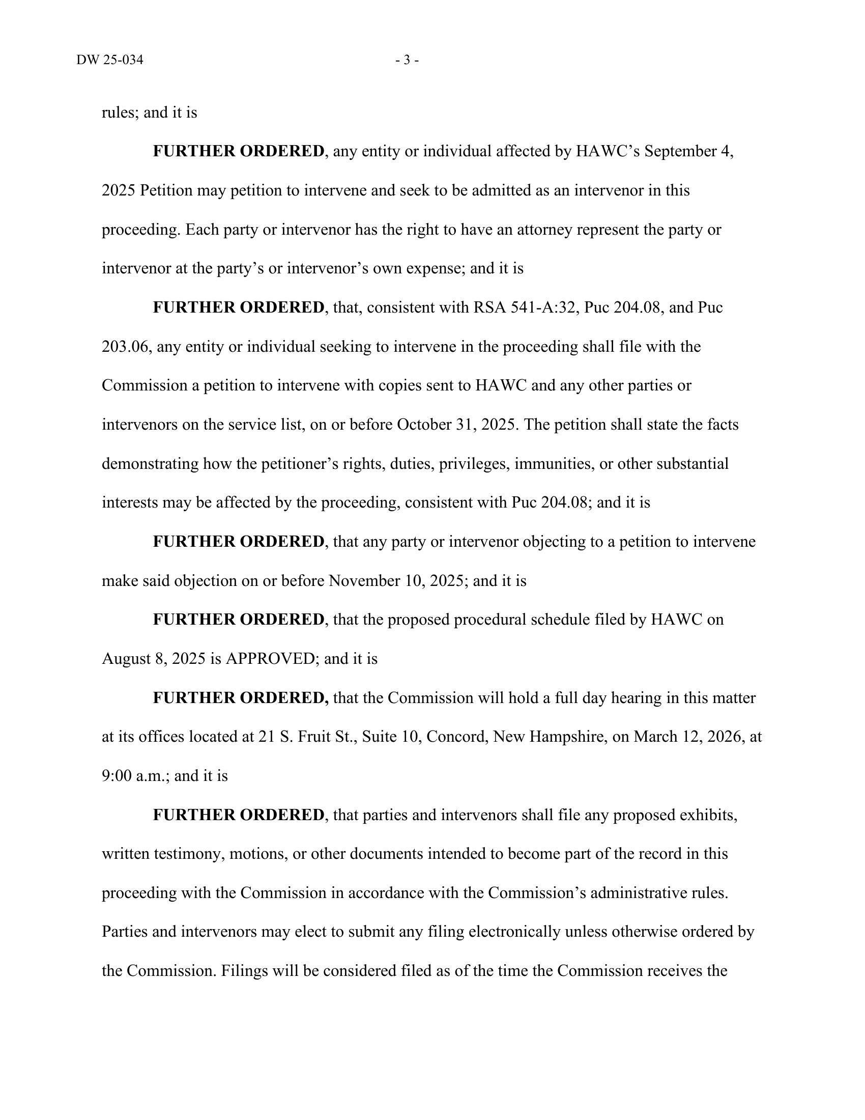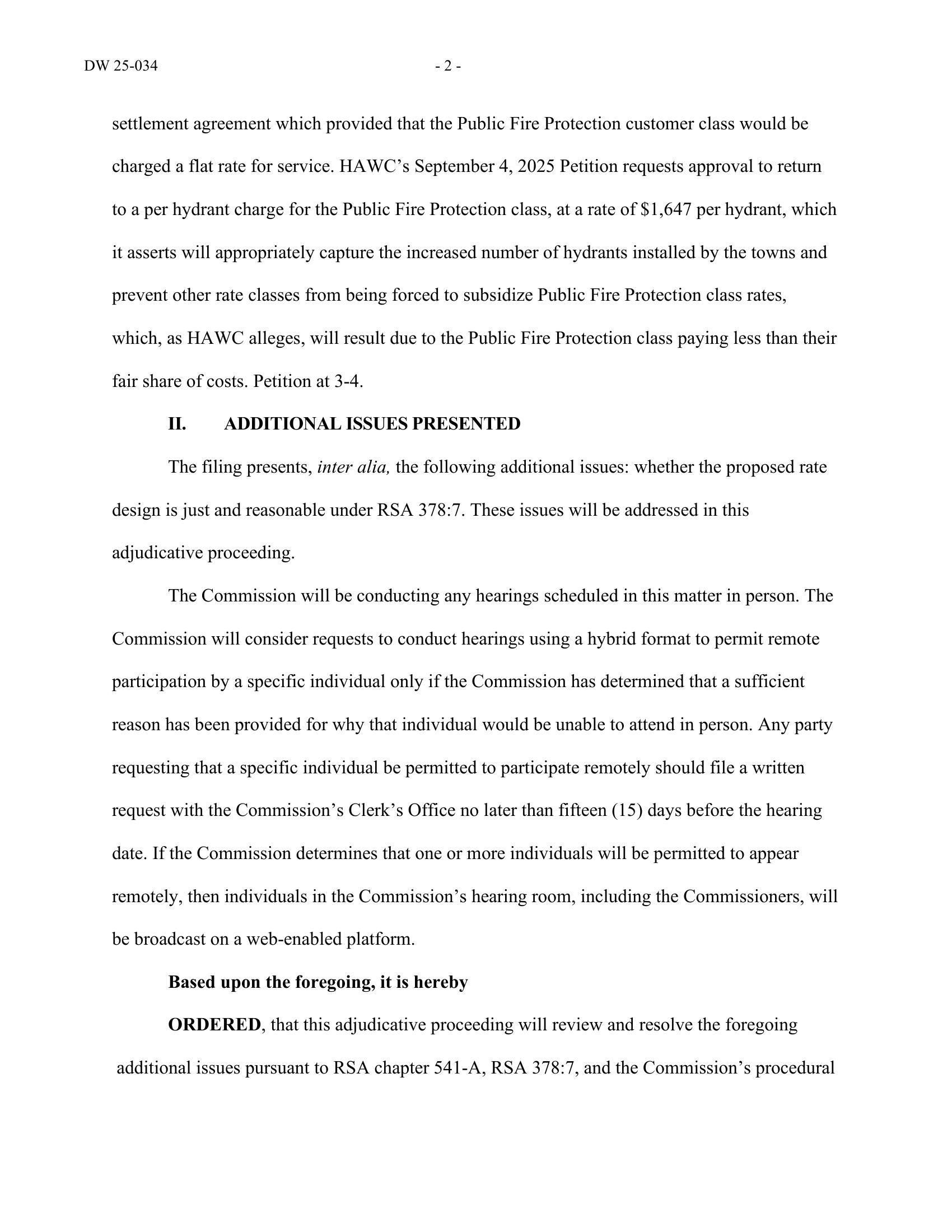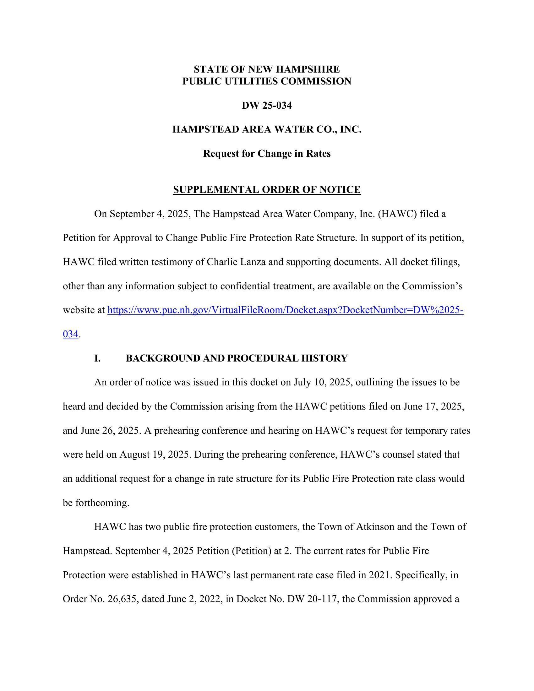 HAWC Petitions for Change in Public Fire Protection Rate Structure | Docket No. DW 25-034