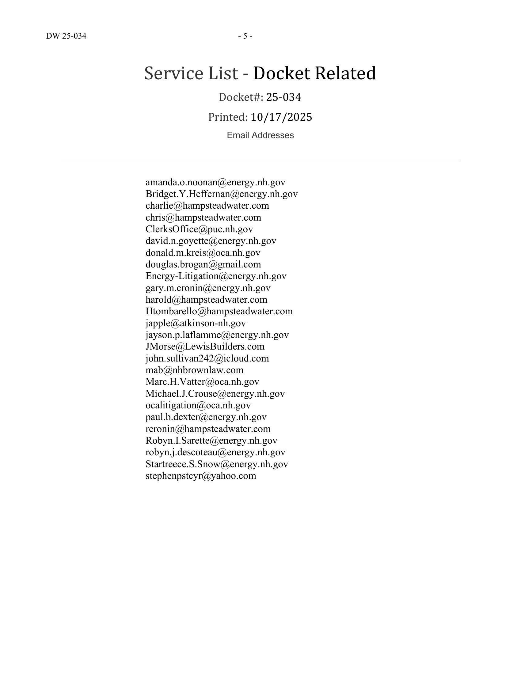 © All rights reserved The Hampstead Area Water Company, Inc.