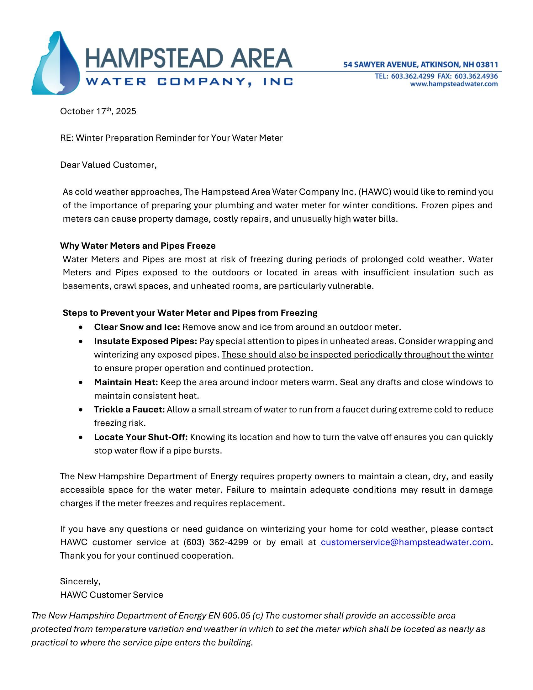 © All rights reserved The Hampstead Area Water Company, Inc.